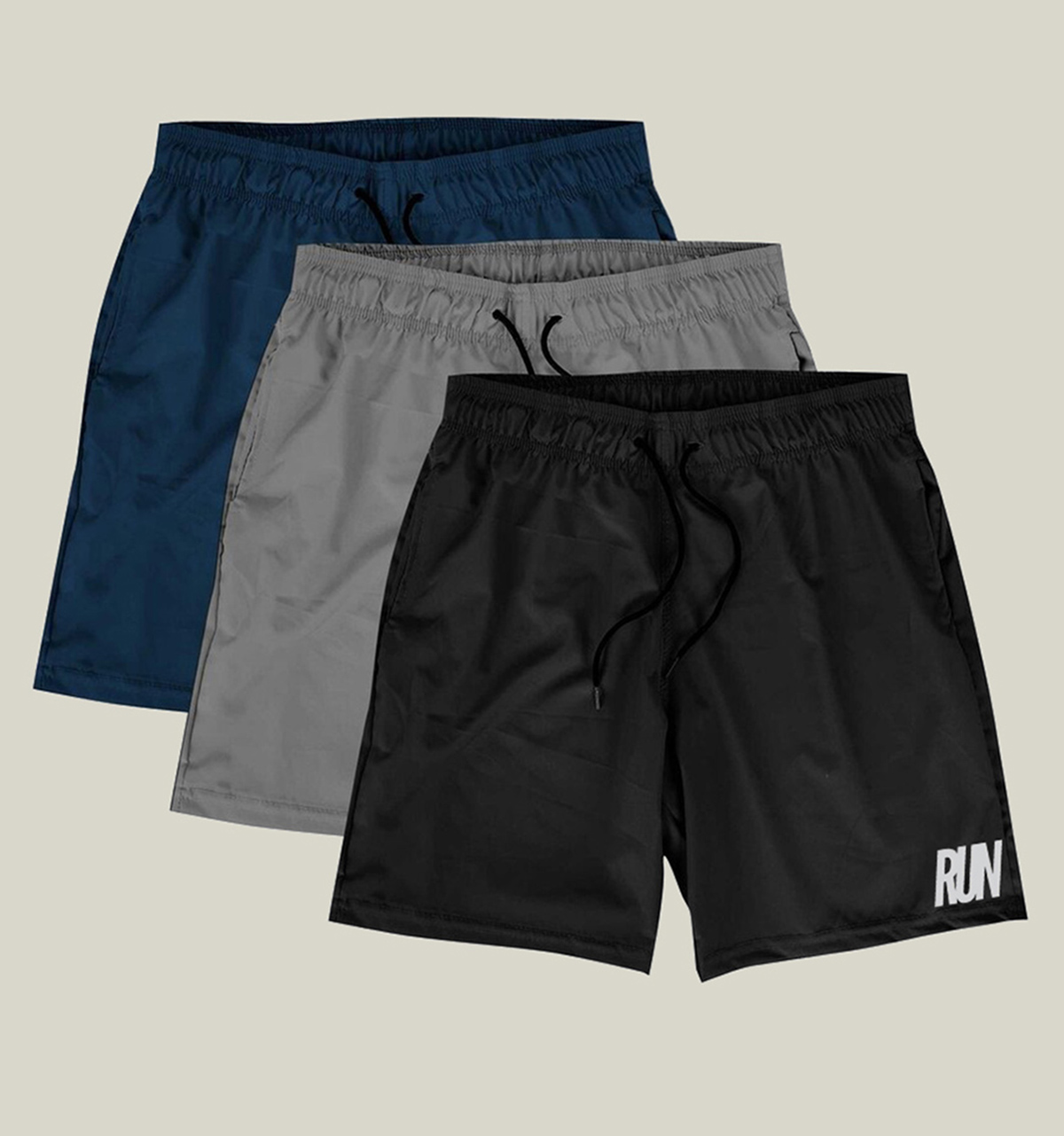 Conforto e versatilidade em dose tripla! O Kit 3 Bermudas Academia Corrida Masculina Elastano Premium Tactel WSS Run Minimalist, a escolha ideal para homens que buscam unir estilo, conforto e performance. Este kit inclui três bermudas masculinas de alta qualidade, cada uma estampada com a palavra "RUN" inclinada, evocando velocidade e dinamismo. Disponíveis nas cores preta, azul marinho e cinza, essas bermudas são perfeitas para diversas atividades físicas e momentos de lazer.